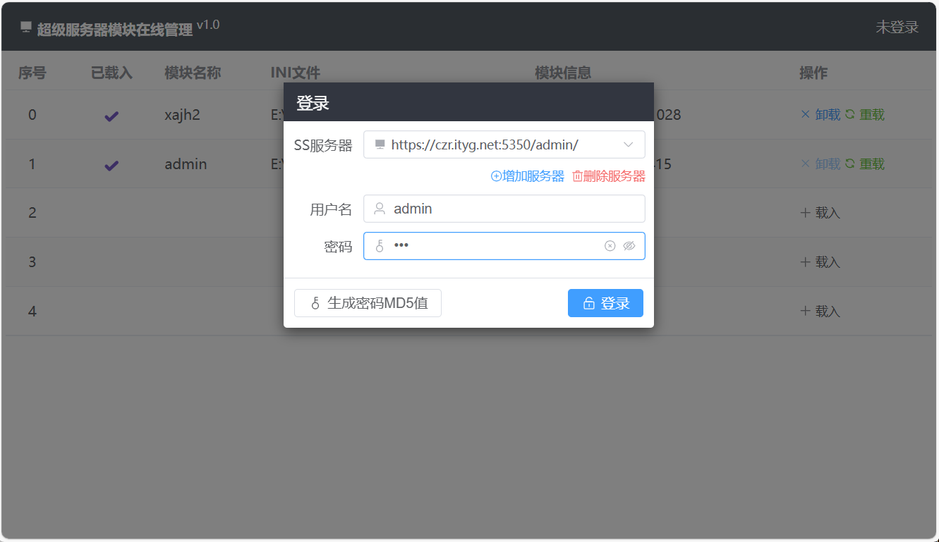 登錄成功后即可對模塊進(jìn)行加載、卸載、重載等操作。